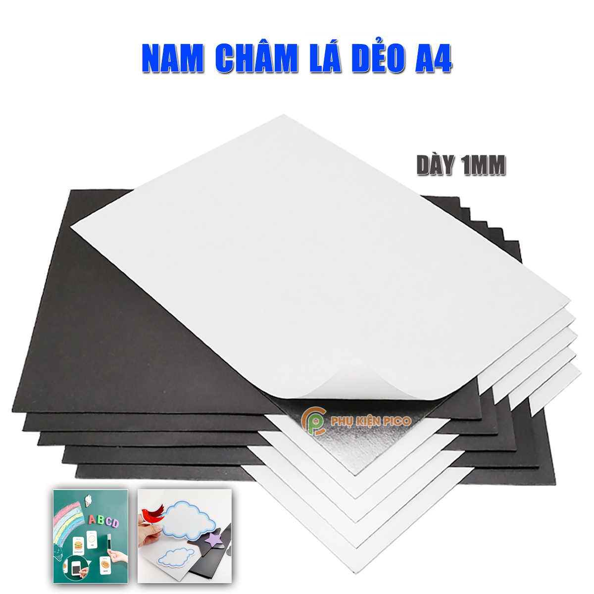 Nam châm lá dẻo A4 dày 1mm có keo dán decal làm giáo cụ dạy học bảng tên, ghi thông tin lên bảng từ, tủ lạnh, rèm cửa sổ