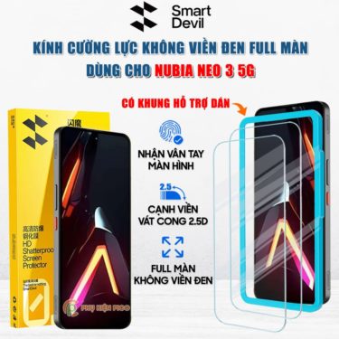 Kính cường lực Nubia Neo 2 5G trong suốt không viền đen Full màn hình Smart Devil có khung hỗ trợ dán