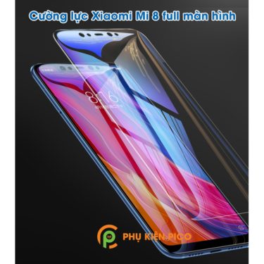 Cường lực Xiaomi Mi 8 full keo độ cứng 9H trong suốt không tai thỏ