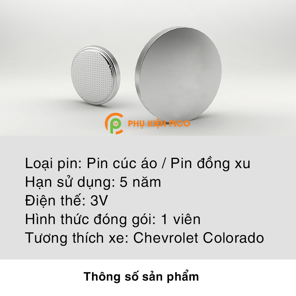 - Pin chìa khóa (pin cúc / pin đồng xu) chính hãng là sản phẩm cung cấp năng lượng để duy trì hoạt động ổn định cho chìa khóa thông minh ô tô Chevrolet Colorado.