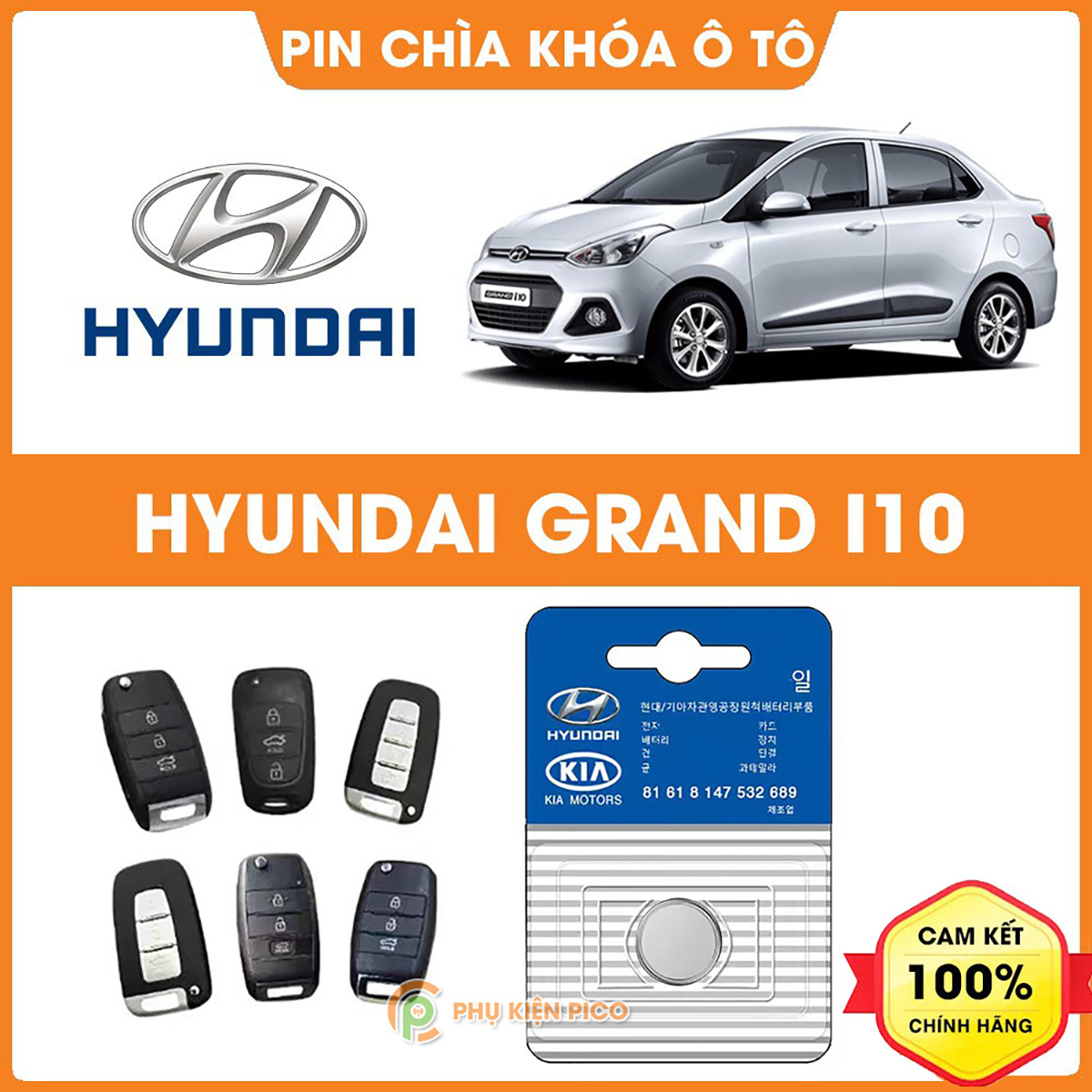 - Pin chìa khóa (pin cúc / pin đồng xu) chính hãng là sản phẩm cung cấp năng lượng để duy trì hoạt động ổn định cho chìa khóa thông minh ô tô Hyundai Grand i10.