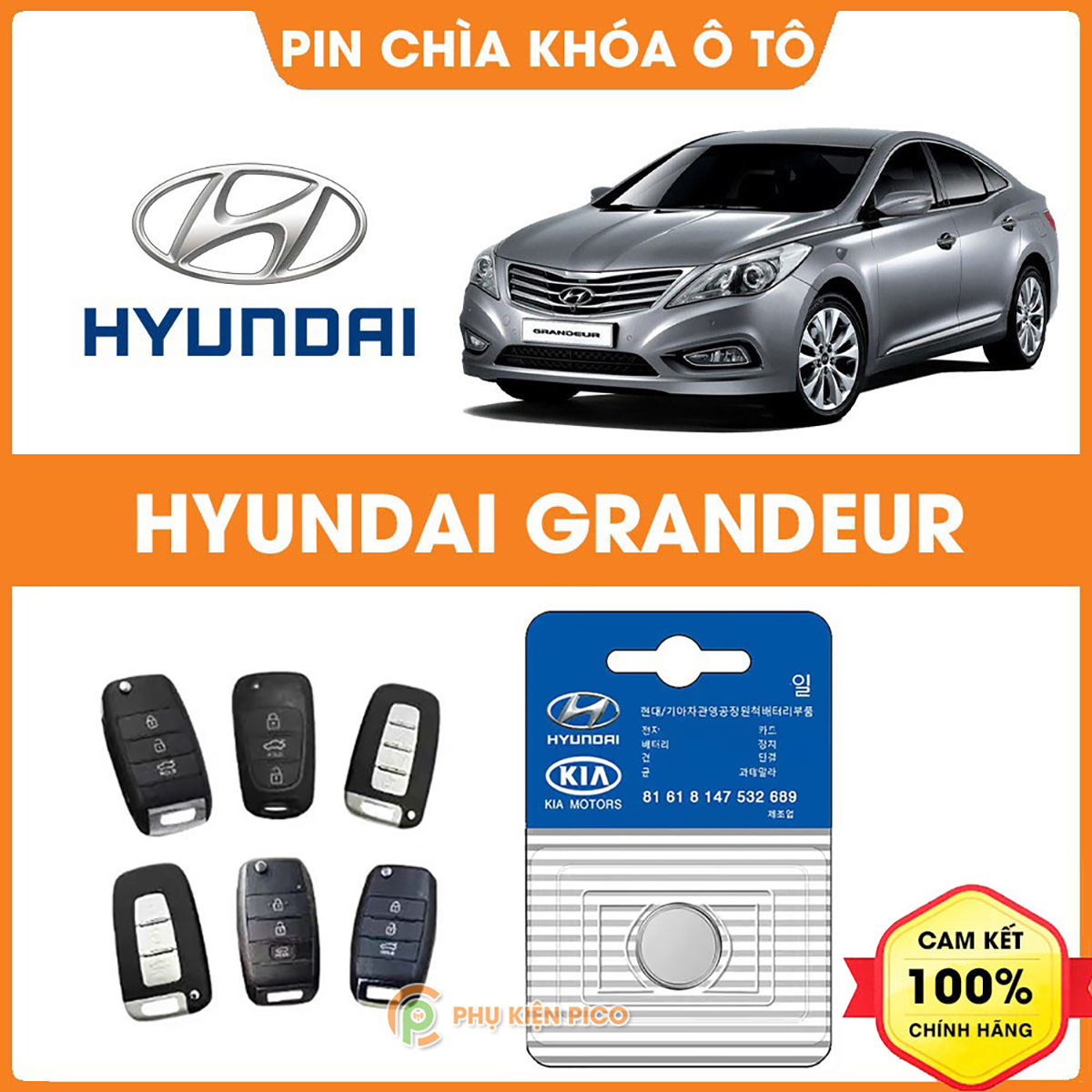 Pin chìa khóa ô tô Hyundai Grandeur chính hãng sản xuất theo công nghệ Nhật Bản – Pin chìa khóa Hyundai Grandeur