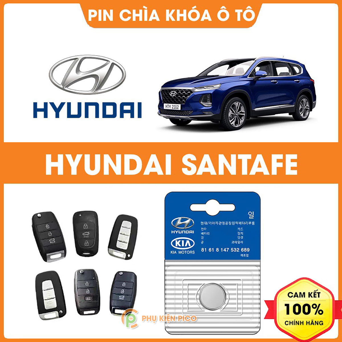 Pin chìa khóa ô tô Hyundai Santafe chính hãng Hyundai sản xuất tại Indonesia 3V Panasonic