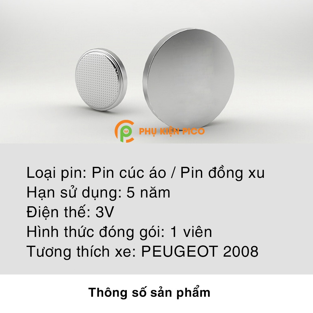 - Pin chìa khóa (pin cúc / pin đồng xu) chính hãng là sản phẩm cung cấp năng lượng để duy trì hoạt động ổn định cho chìa khóa thông minh ô tô Peugeot 2008.
