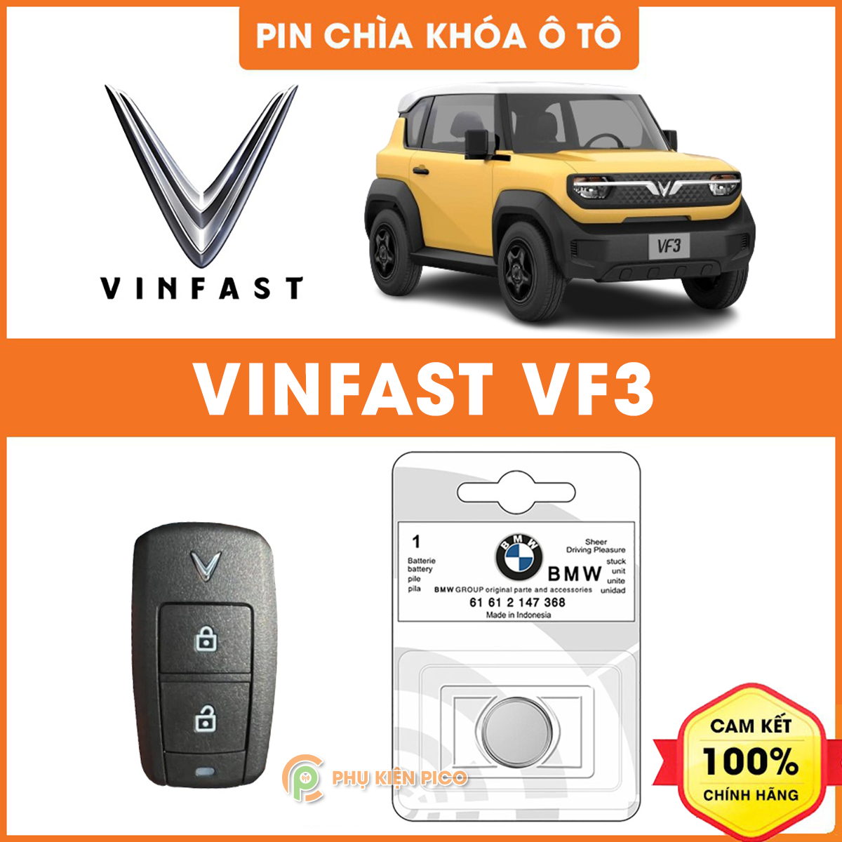 Pin chìa khóa ô tô Vinfast VF3 chính hãng sản xuất tại Indonesia