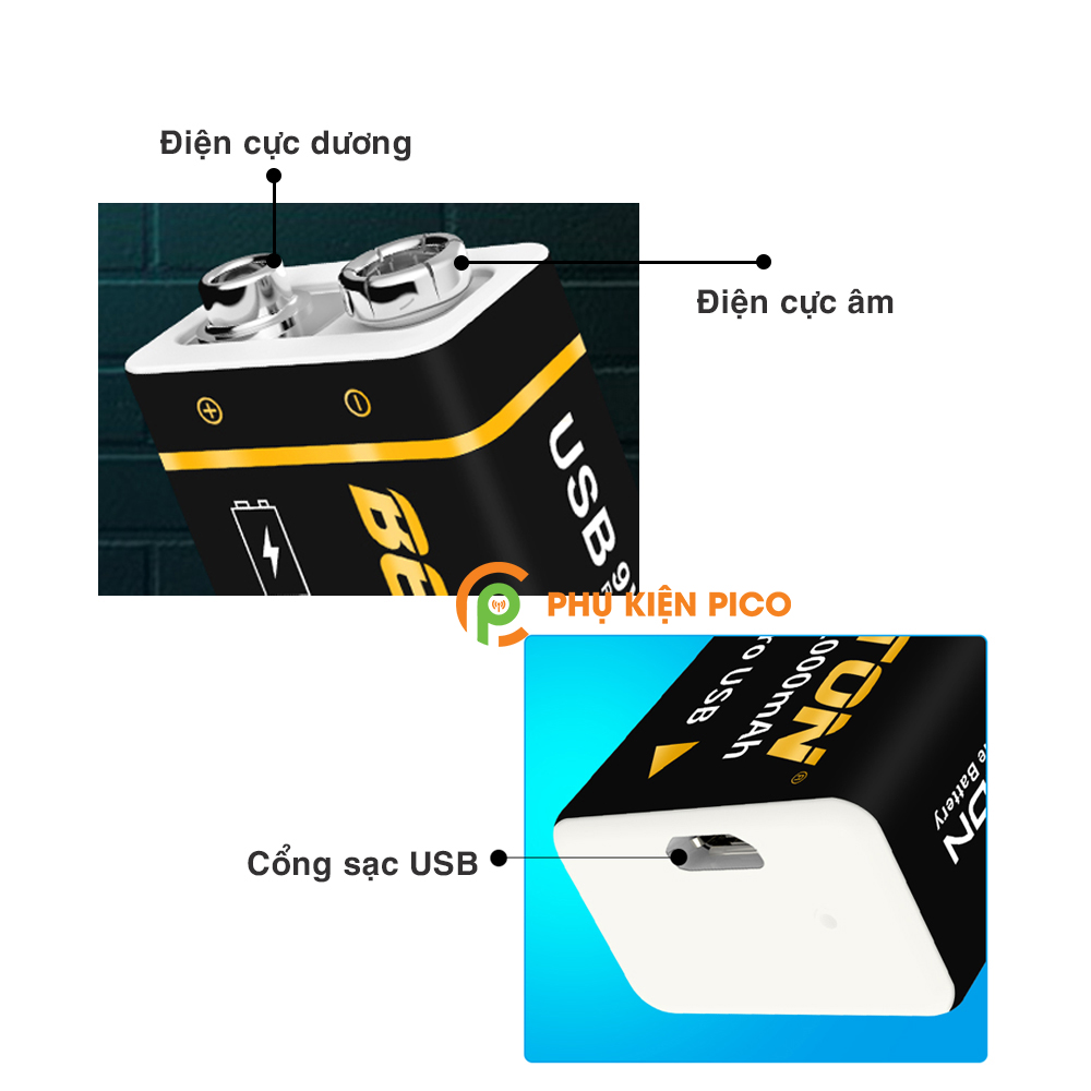 Pin trụ Lithium 1000mAh chính hãng Beston có cổng sạc trực tiếp – Pin Beston