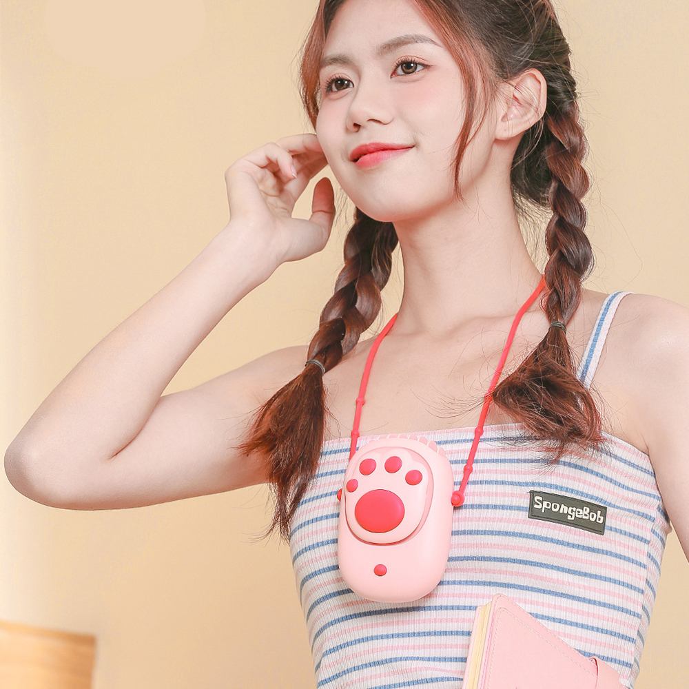 Quạt mini cầm tay – Quạt đeo cổ chân mèo sạc điện không cánh giá rẻ cute