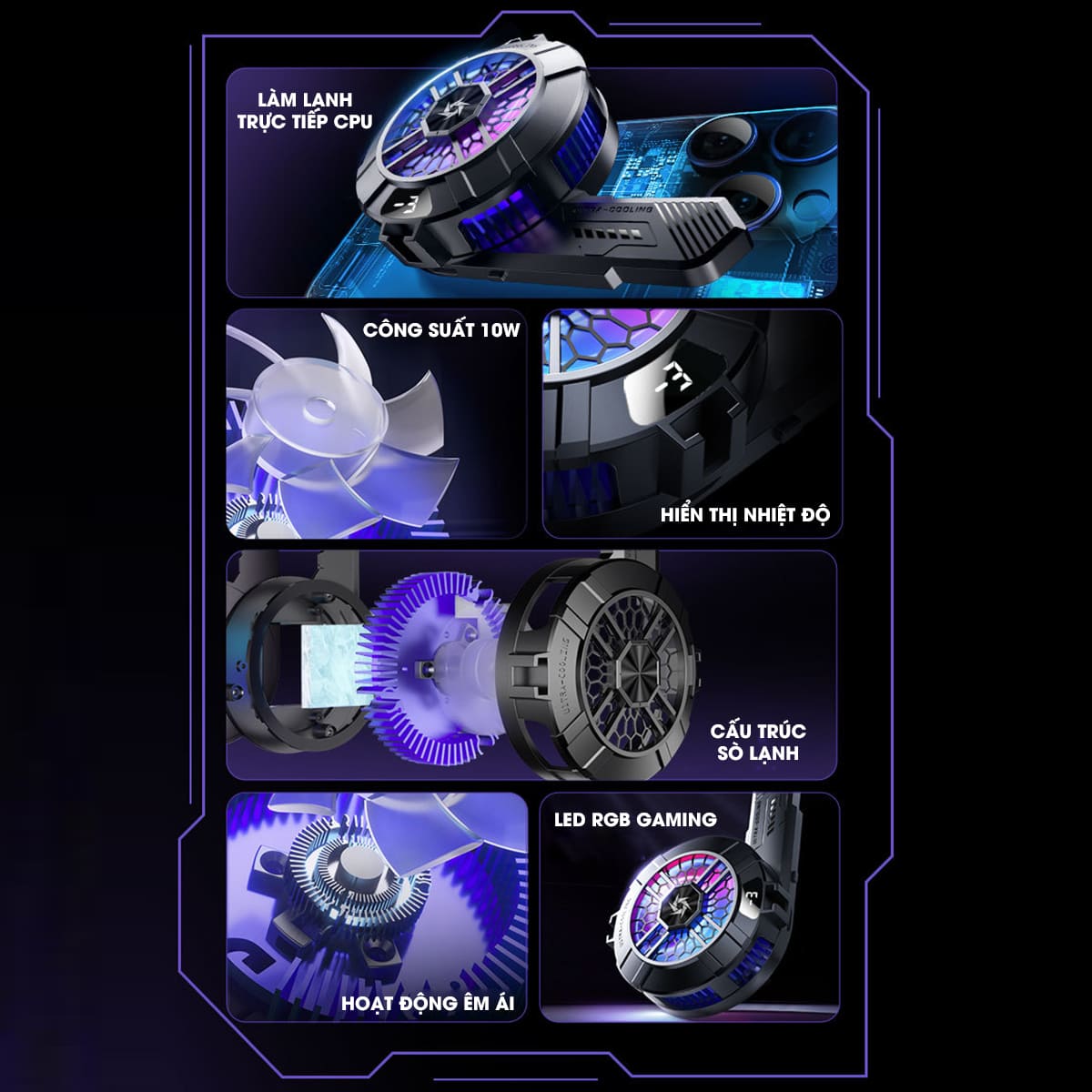 - Công nghệ quạt tản nhiệt sò lạnh siêu mát, kéo dài tuổi thọ điện thoại, giữ mát cho máy khi chơi game, livetream.