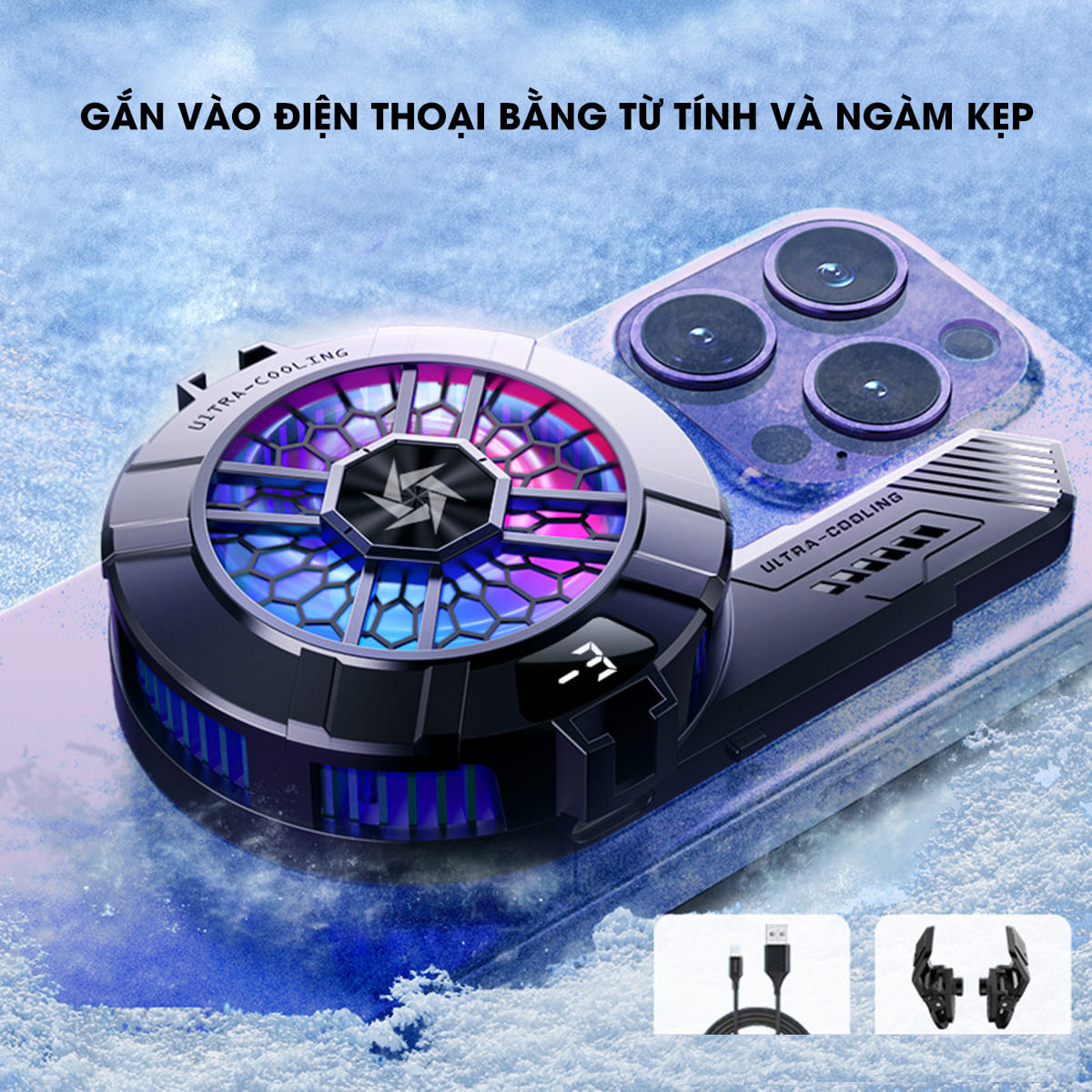 Quạt sò lạnh tản nhiệt điện thoại SL33 led RGB hiển thị nhiệt độ giảm nhiệt nhanh hỗ trợ tăng FPS Gaming Liên Quân PUBG FF