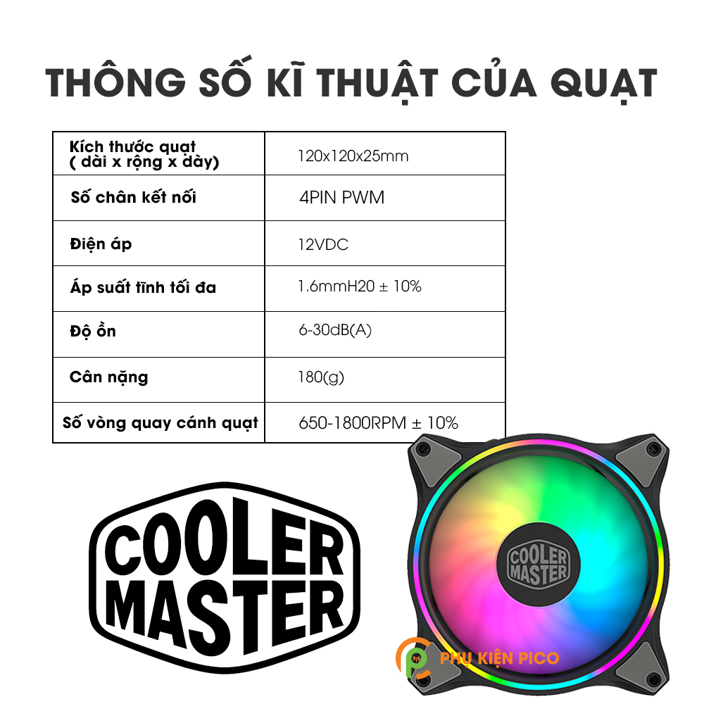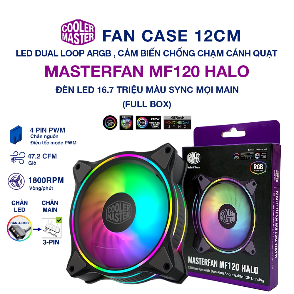 - Tên sản phẩm: MasterFan MF120 Halo – Led Rainbow
