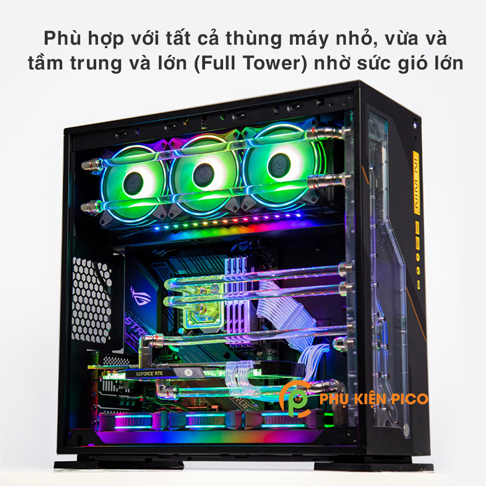 - Quạt Fan Case 12cm đồng bộ ARGB với mainboard Asus Aura, ASRock RGB, Gigabyte Fusion hay MSI RGB thông qua chân cắm 5v ARGB 3-pin.