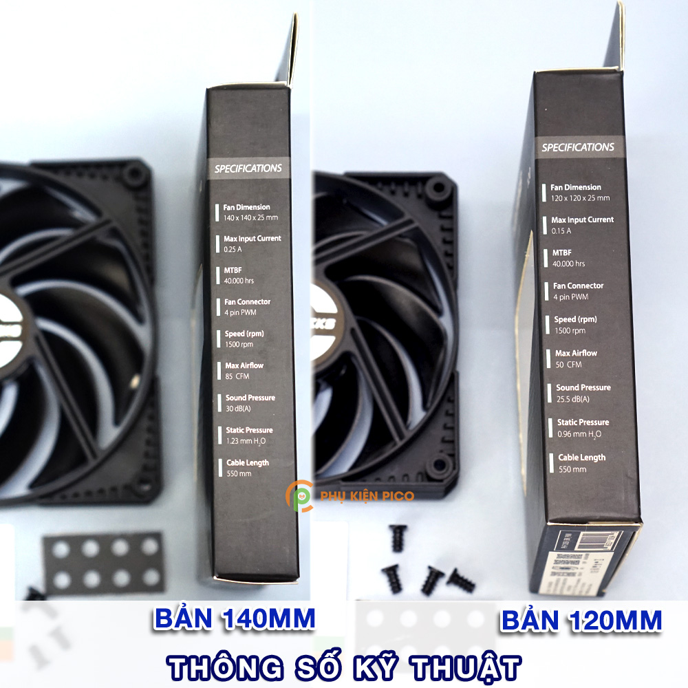 - Kích thước quạt: 140 × 140 × 25 mm (PWM)