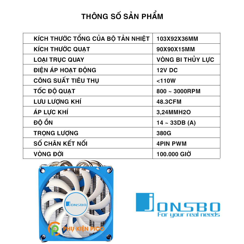 ● Kích thước tổng của bộ tản nhiệt: 103x92x36mm