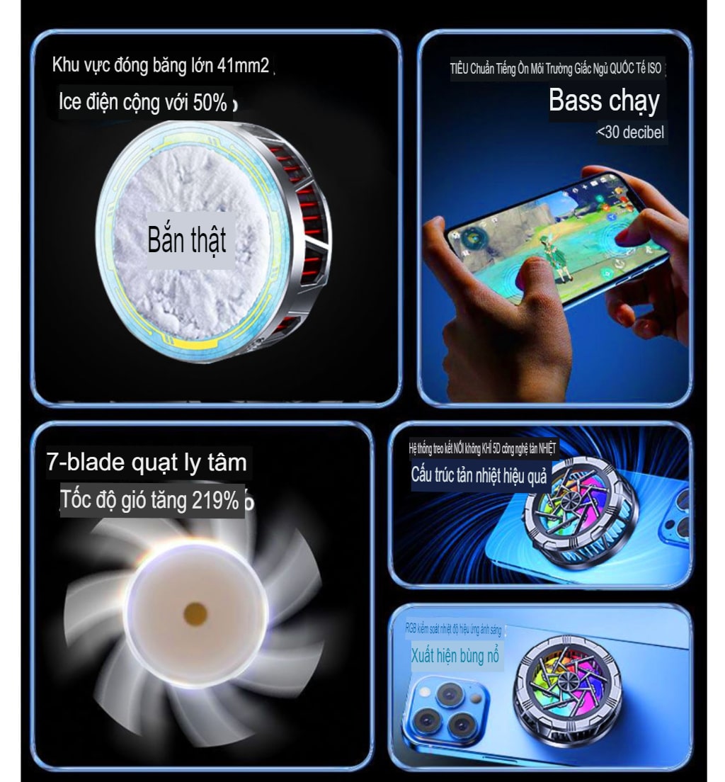 - Công nghệ quạt tản nhiệt sò lạnh siêu mát, kéo dài tuổi thọ điện thoại, giữ mát cho máy khi chơi game, livetream.