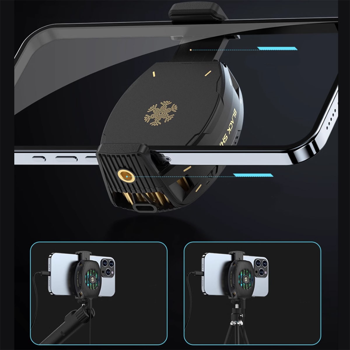 - Quạt tản nhiệt Black Shark Funcooler 4 sử dụng cho tất cả các dòng điện thoại iPhone, Android.