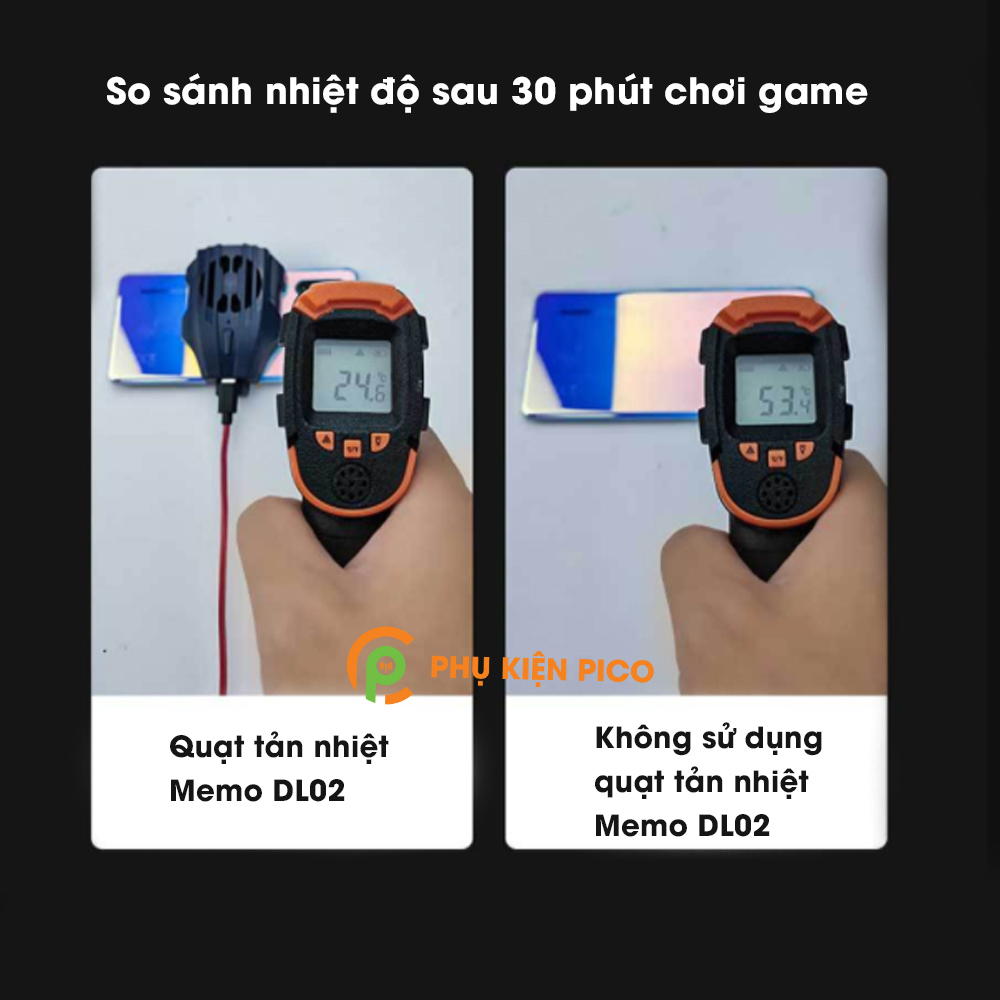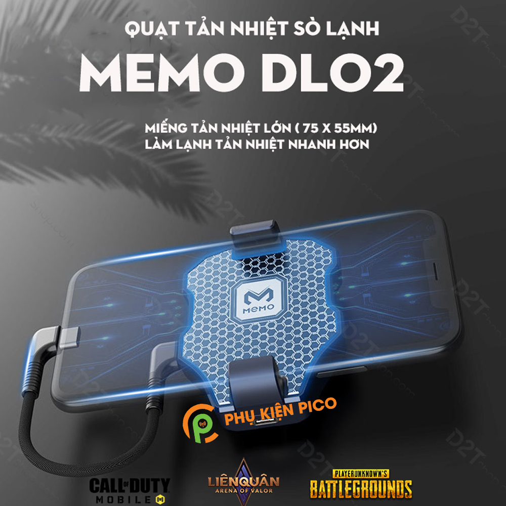 - Quạt tản nhiệt điện thoại chính hãng Memo DL02 có chế độ tản nhiệt mạnh mẽ, giúp điện thoại không bị quá nóng khi hoạt động, đặc biệt là khi chơi các trò nặng như PUBG, Liên quân…