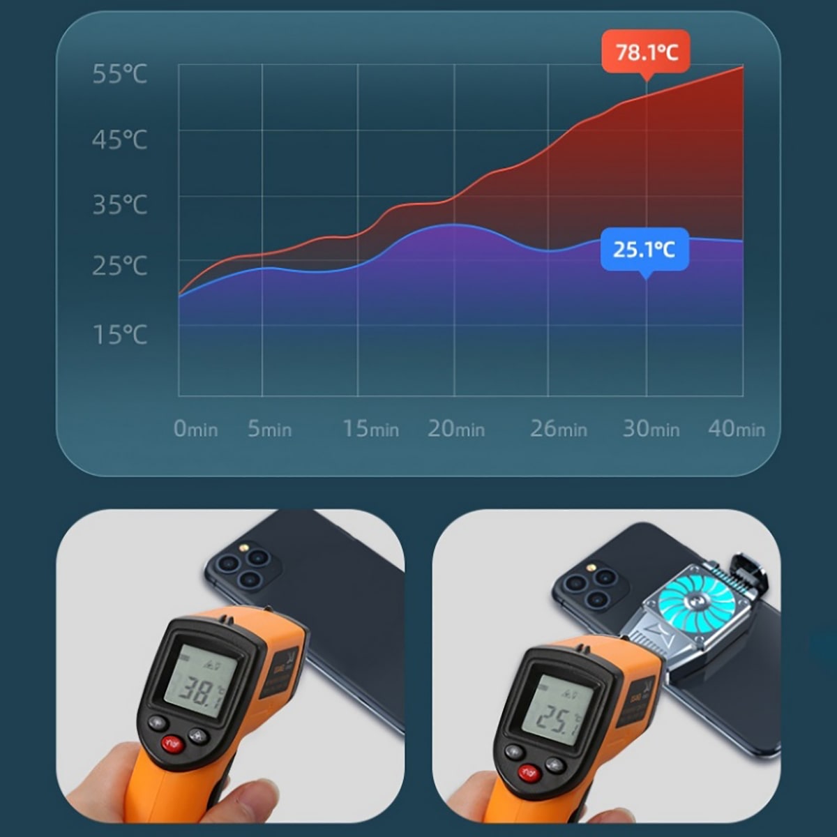 - Bộ làm mát nhỏ và tiện lợi, có kích thước bằng một phần ba kích thước của điện thoại di động, giúp việc chơi game trở nên hoàn hảo.