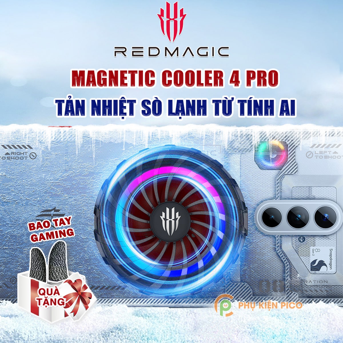 • Quạt Redmagic Magnetic Cooler 4 Pro là siêu phẩm sò lạnh 2023 với công suất sò lạnh lên đến 27W, có thể làm lạnh về -9 độ C.