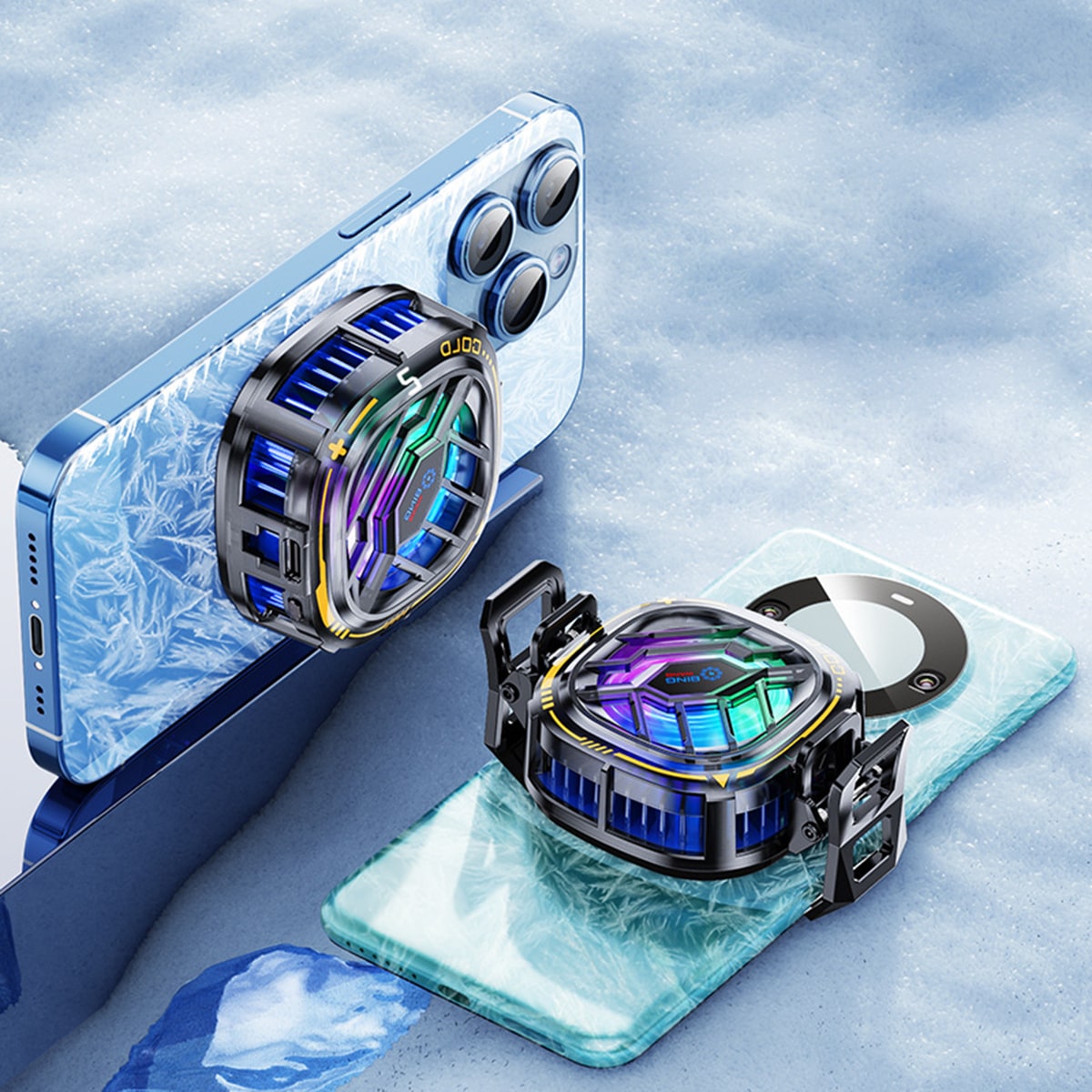 • Quạt gắn vào điện thoại bằng từ tính hoặc ngàm kẹp tiện lợi.