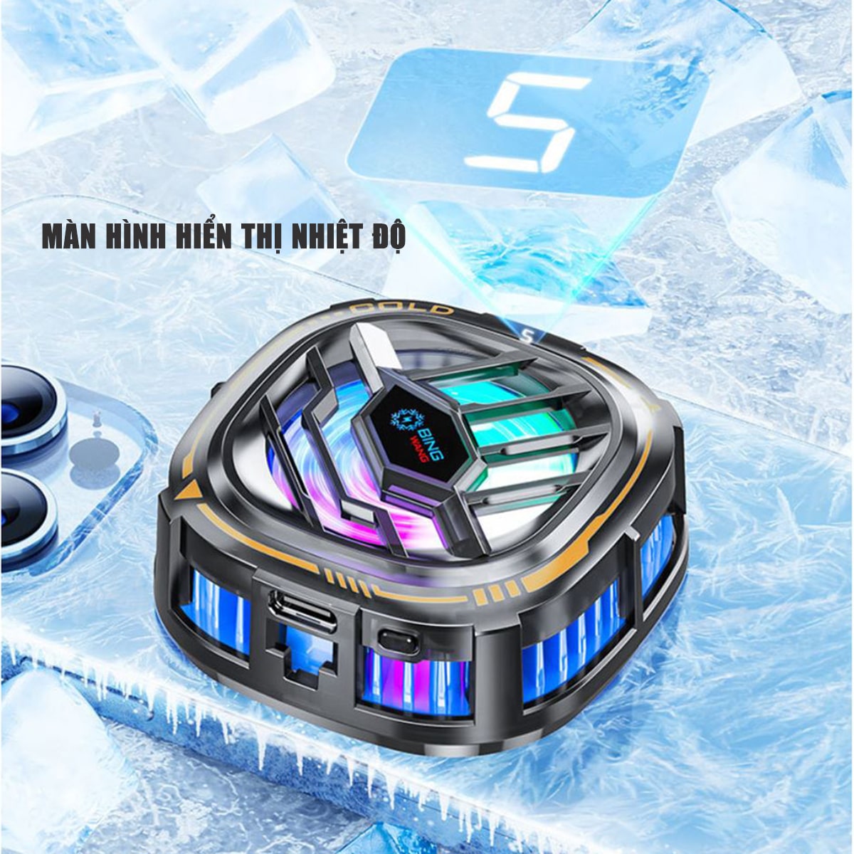 • Quạt sử dụng sò lạnh cỡ lớn giúp tăng diện tích tản nhiệt cho điện thoại.