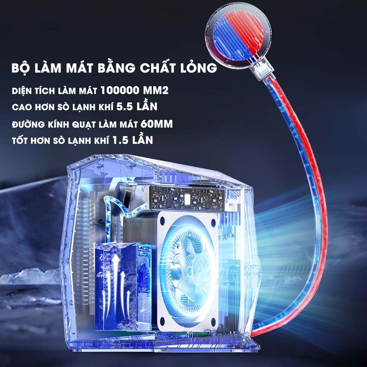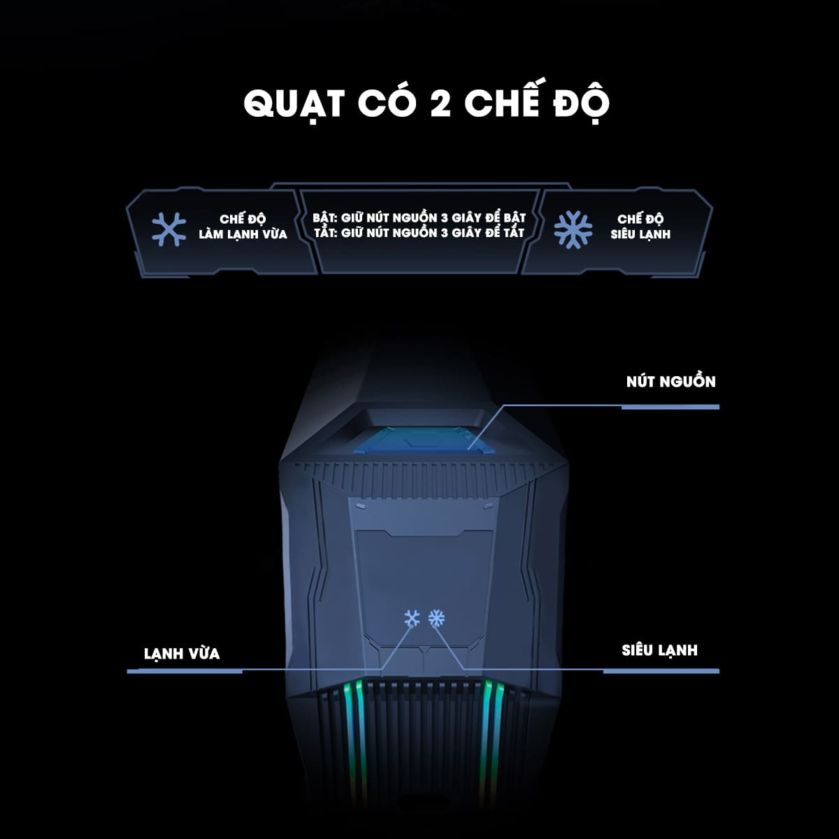 - Quạt tản nhiệt giúp tản nhiệt hiệu quả vượt trội so với các dòng sò lạnh truyền thống làm lạnh đến 98% điện tích điện thoại, làm lạnh đến phần CPU của điện thoại.
