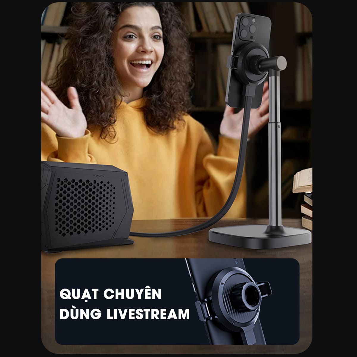 - Quạt chuyên dụng cho hoạt động livestream vì không gây tiếng ồn vào mic và làm lạnh sâu ổn định.