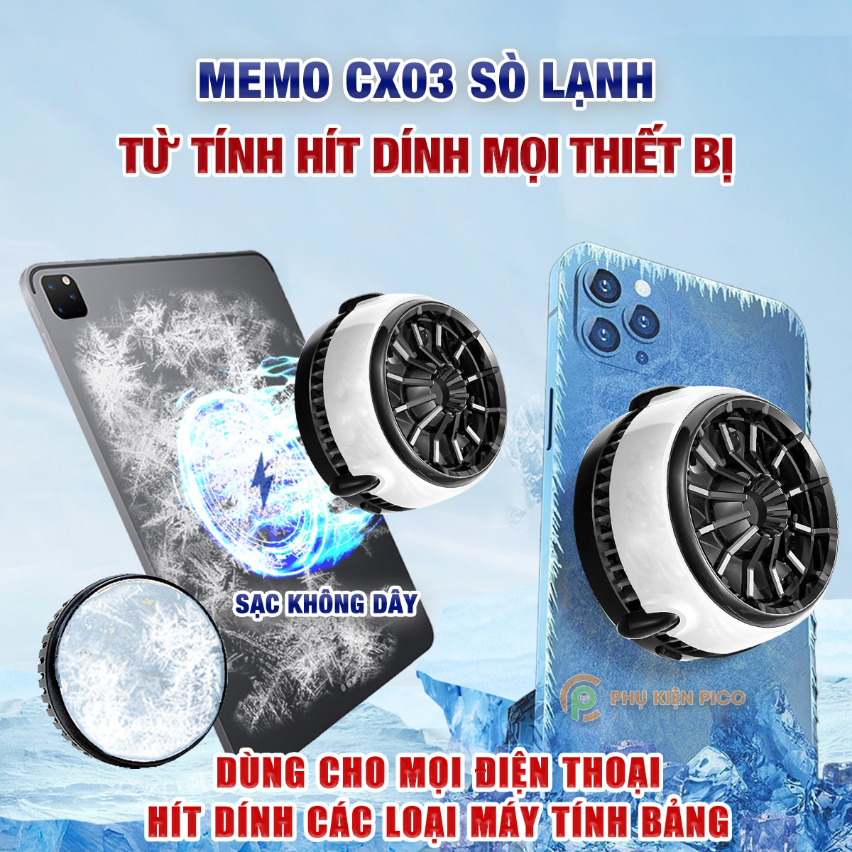 Quạt tản nhiệt điện thoại Memo CX03 sò lạnh từ tính led RGB hỗ trợ sạc không dây – quạt tản nhiệt máy tính bảng CX03