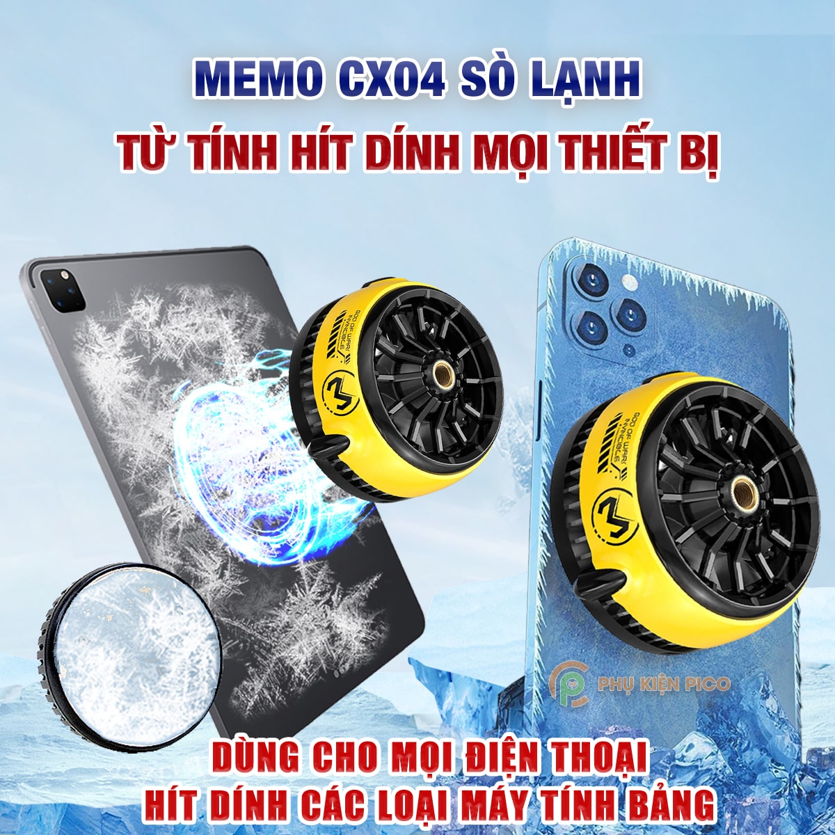 • Quạt tản nhiệt sò lạnh Memo CX04 mới nhất 2023 là phiên bản nâng cấp của Memo CX03 nhỏ gọn hơn có hỗ trợ gắn ngàm livestream.