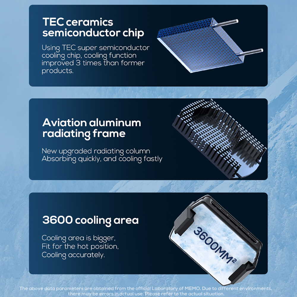 - Bản quạt tản nhiệt sò lạnh Memo DL10 sử dụng công nghệ sò lạnh mới TEC có khả năng làm lạnh gấp 3 lần các dòng quạt thế hệ cũ.