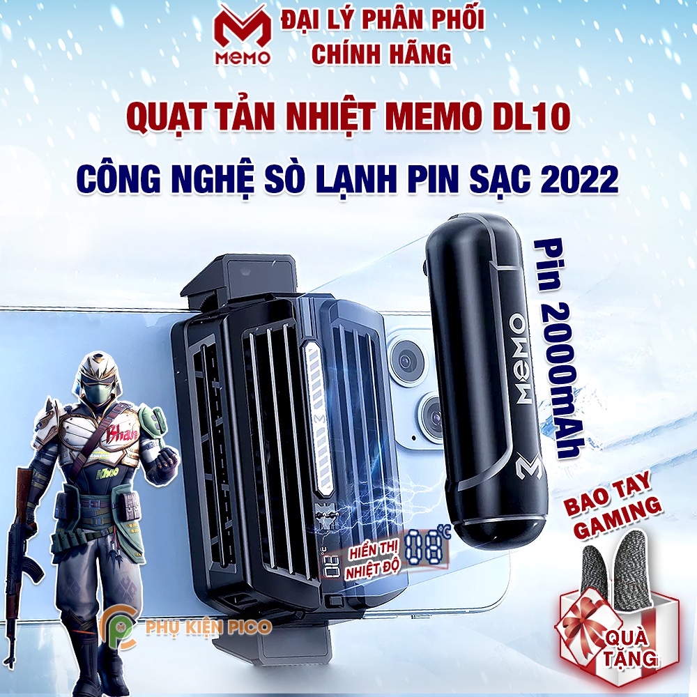 Quạt tản nhiệt điện thoại Memo DL10 Quạt pin 2000mAh màn hình hiển thị nhiệt độ sò lạnh thế hệ mới Led Gaming RGB