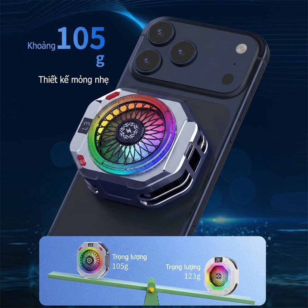• Công nghệ quạt tản nhiệt sò lạnh siêu mát, kéo dài tuổi thọ điện thoại, giữ mát cho máy khi chơi game, livetream.