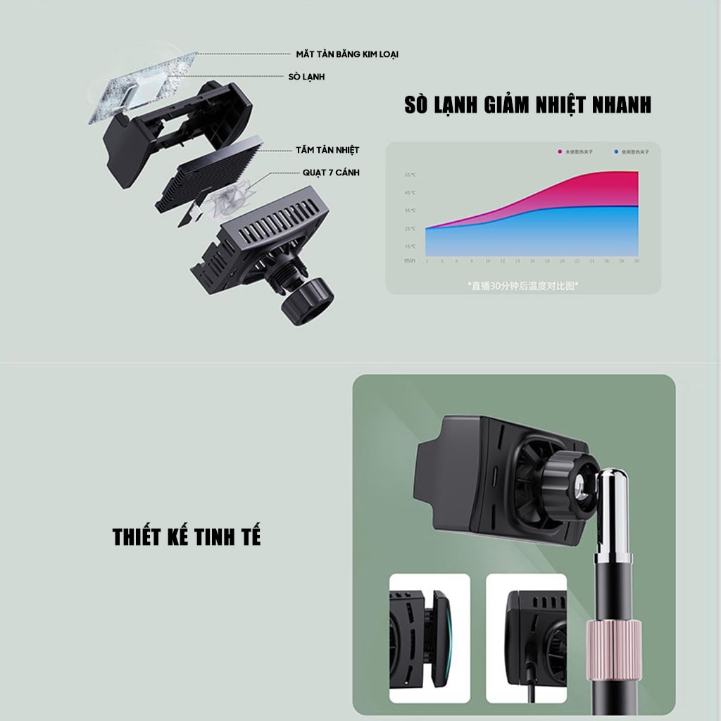 Quạt tản nhiệt điện thoại sò lạnh ngàm kẹp J22 chuyên dụng hỗ trợ livestream độ ồn thấp