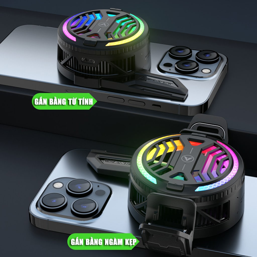 • Quạt gắn vào điện thoại bằng từ tính hoặc ngàm kẹp rời tiện lợi.