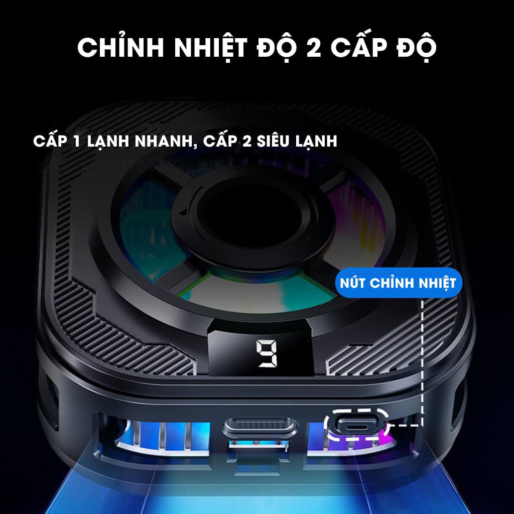 Quạt tản nhiệt điện thoại sò lạnh SL39 từ tính có ngàm kẹp rời màn hình hiển thị nhiệt độ Led RGB Gaming
