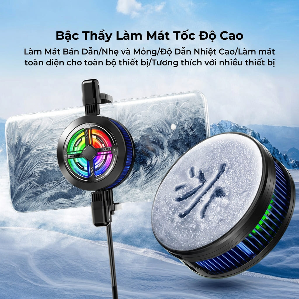 Quạt tản nhiệt điện thoại sò lạnh từ tính C90 đóng băng bề mặt có ngàm kẹp rời giảm nhiệt nhanh hỗ trợ tăng FPS Gaming Liên Quân PUBG