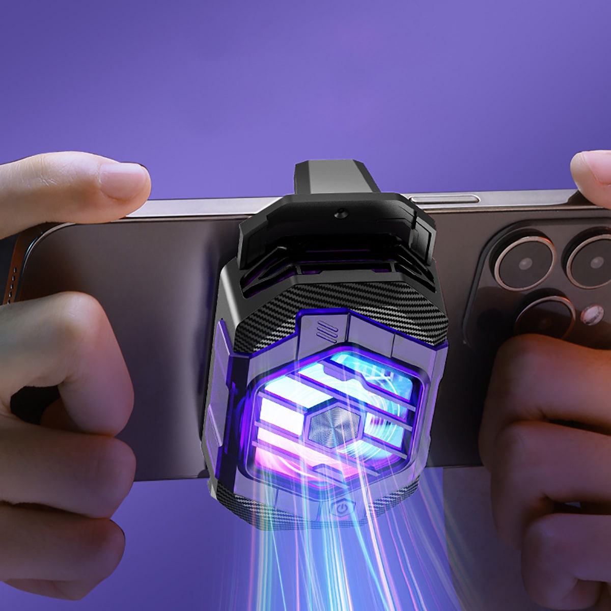- Tốc độ quạt cao ngay lập tức làm mát điện thoại, hướng gió không thổi vào tay.