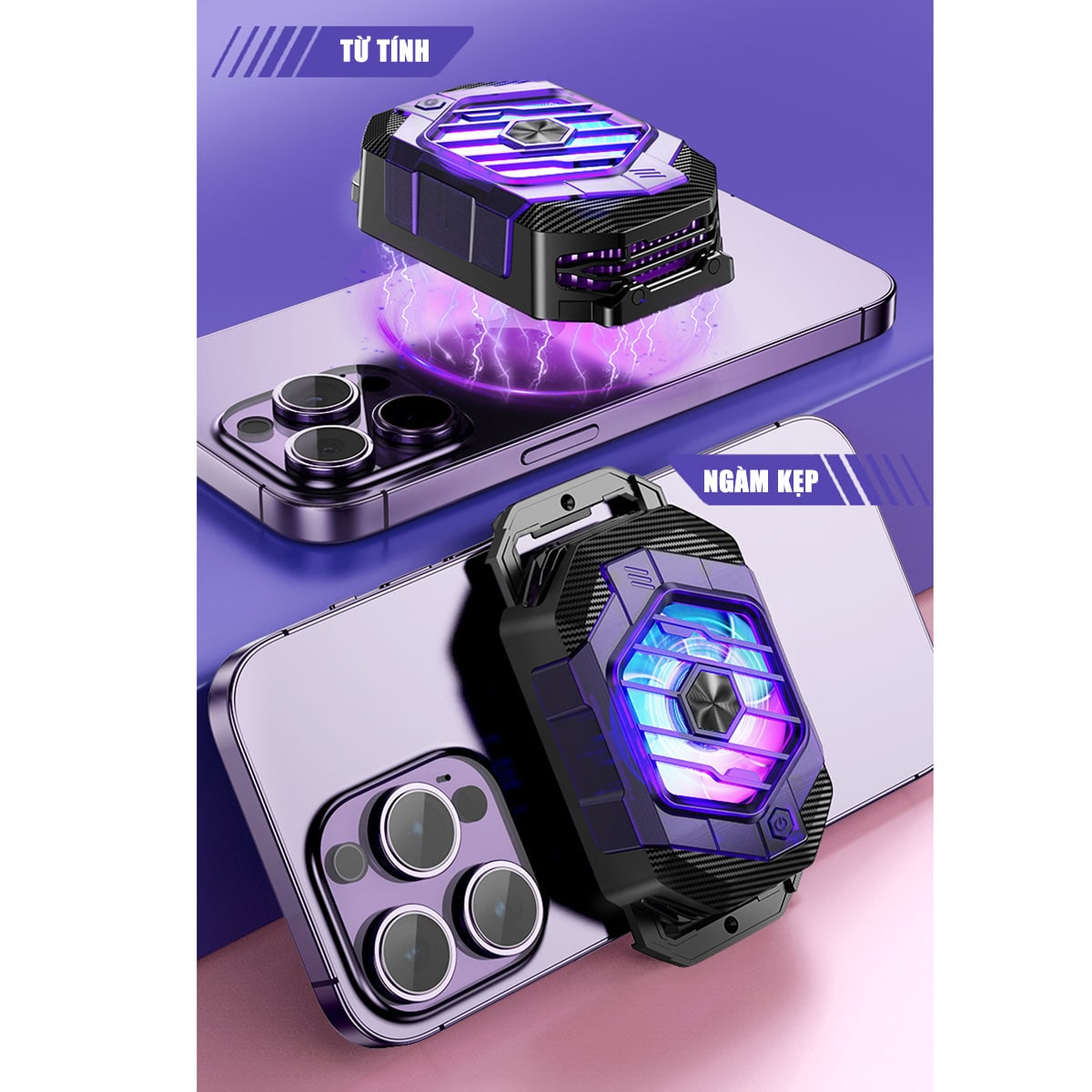 - Quạt gắn vào điện thoại bằng ngàm hoặc từ tính tiện dụng.