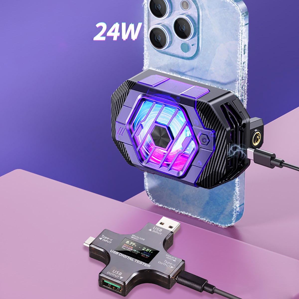 Quạt tản nhiệt điện thoại X65 siêu sò lạnh 24W 3 chế độ làm lạnh led RGB – Tản nhiệt Ipad X65