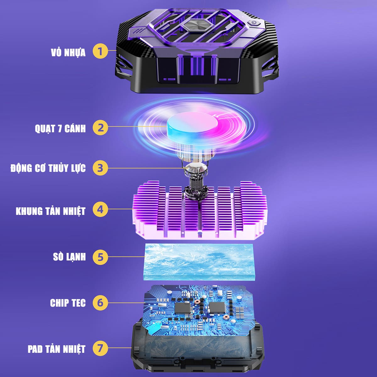 • Công nghệ quạt tản nhiệt sò lạnh siêu mát, kéo dài tuổi thọ điện thoại, giữ mát cho máy khi chơi game, livetream.