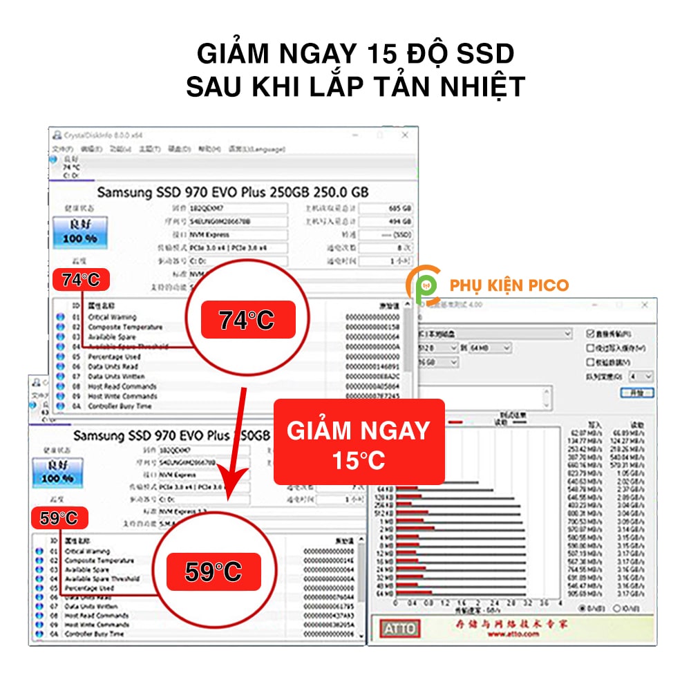 • Giảm ngay 15 độ SSD sau khi lắp tản nhiệt.