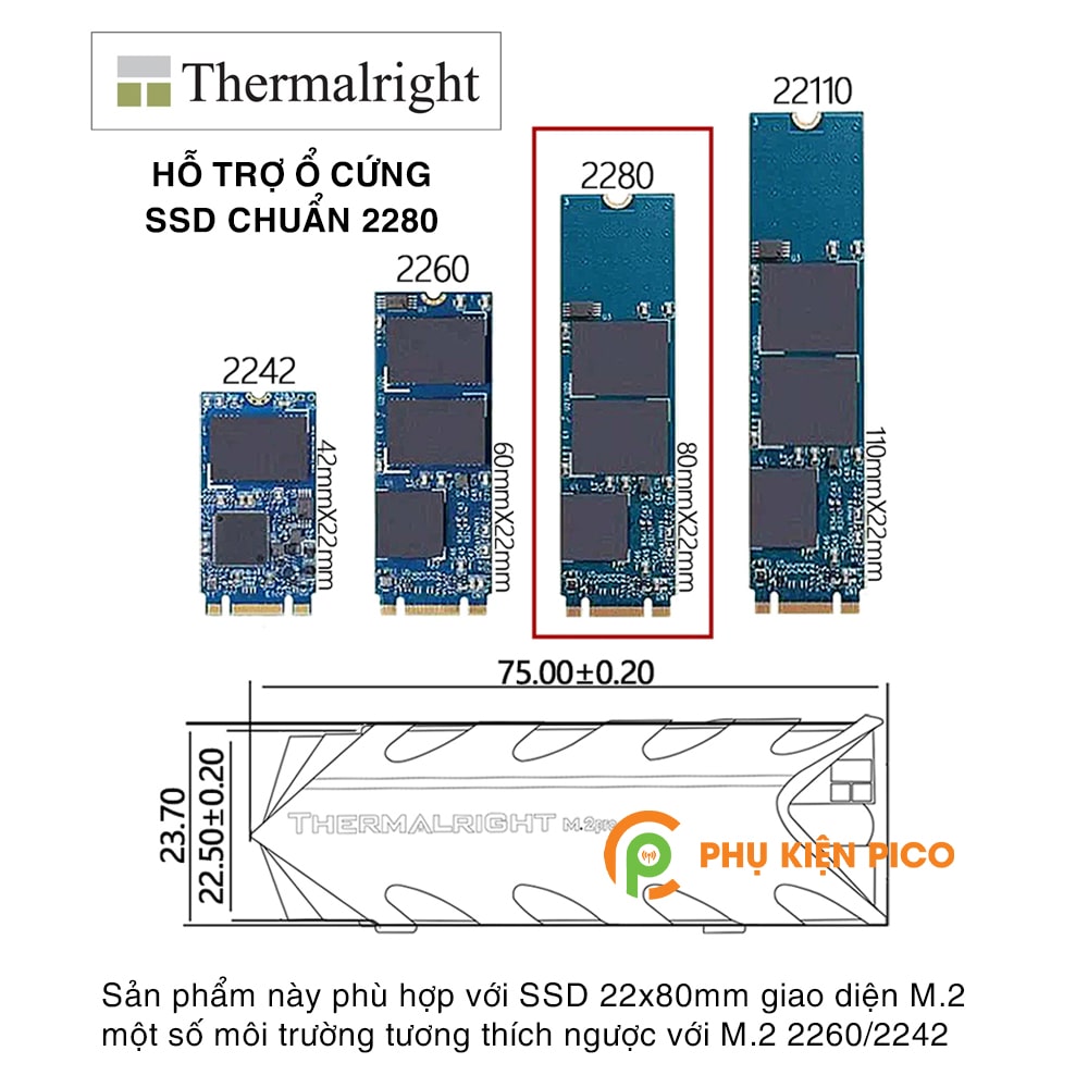 • Thermalright M.2 2280 Pro là phụ kiện giúp tản nhiệt cho ổ SSD M2 chuẩn 2280 (không hỗ trợ 2242, 2260) giúp duy trì hoạt động, tăng tuổi thọ cho SSD.