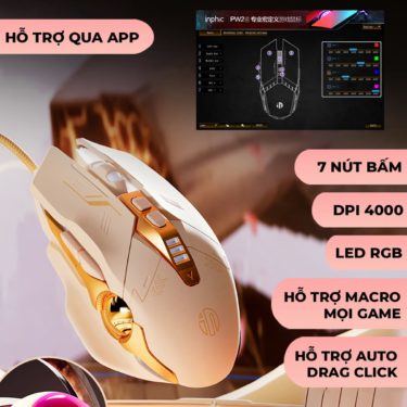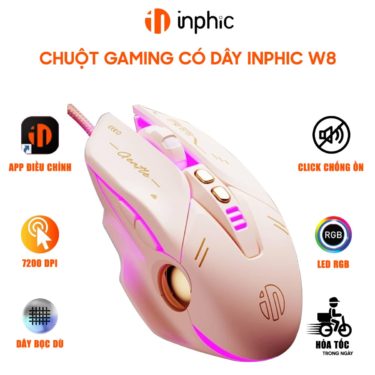 Chuột máy tính có dây Inphic W8 – Hồng Cute, Silent Click, DPI 7200, App tùy chỉnh cho game thủ văn phòng